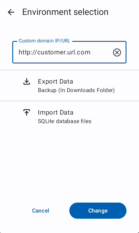 The environment URL is a android managed configuration field which can be controlled by a Mobile Device Management system.