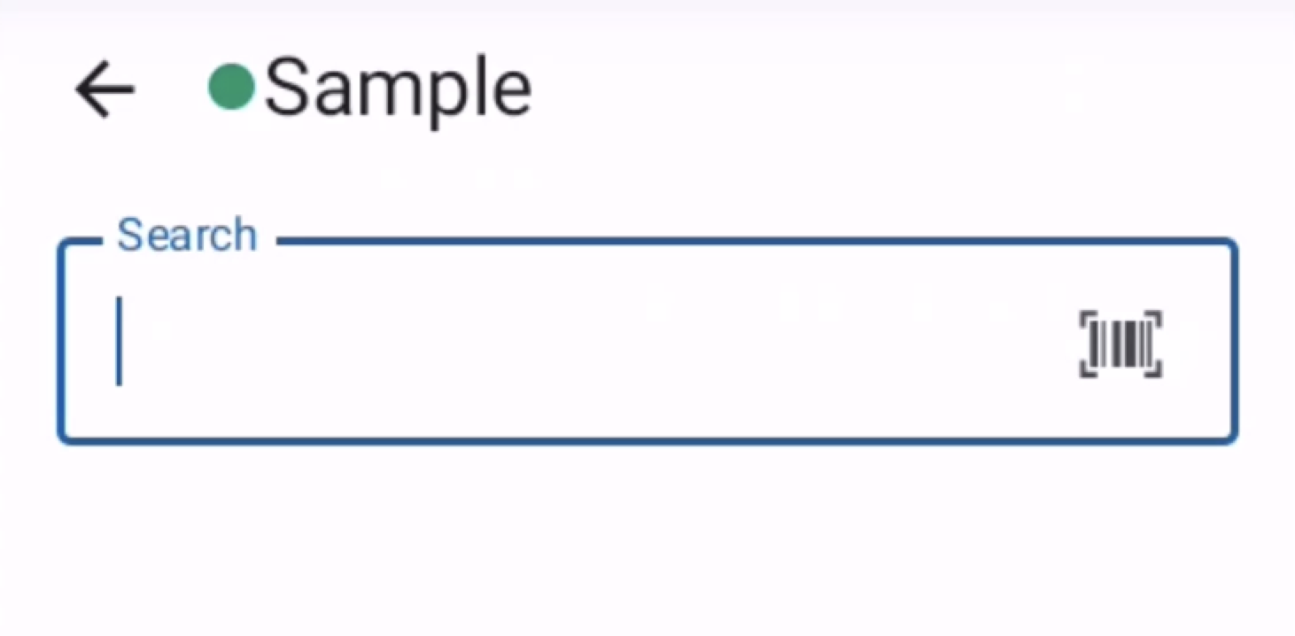 The Sample screen allows users to look up scan history for a specific item by entering or scanning its barcode.