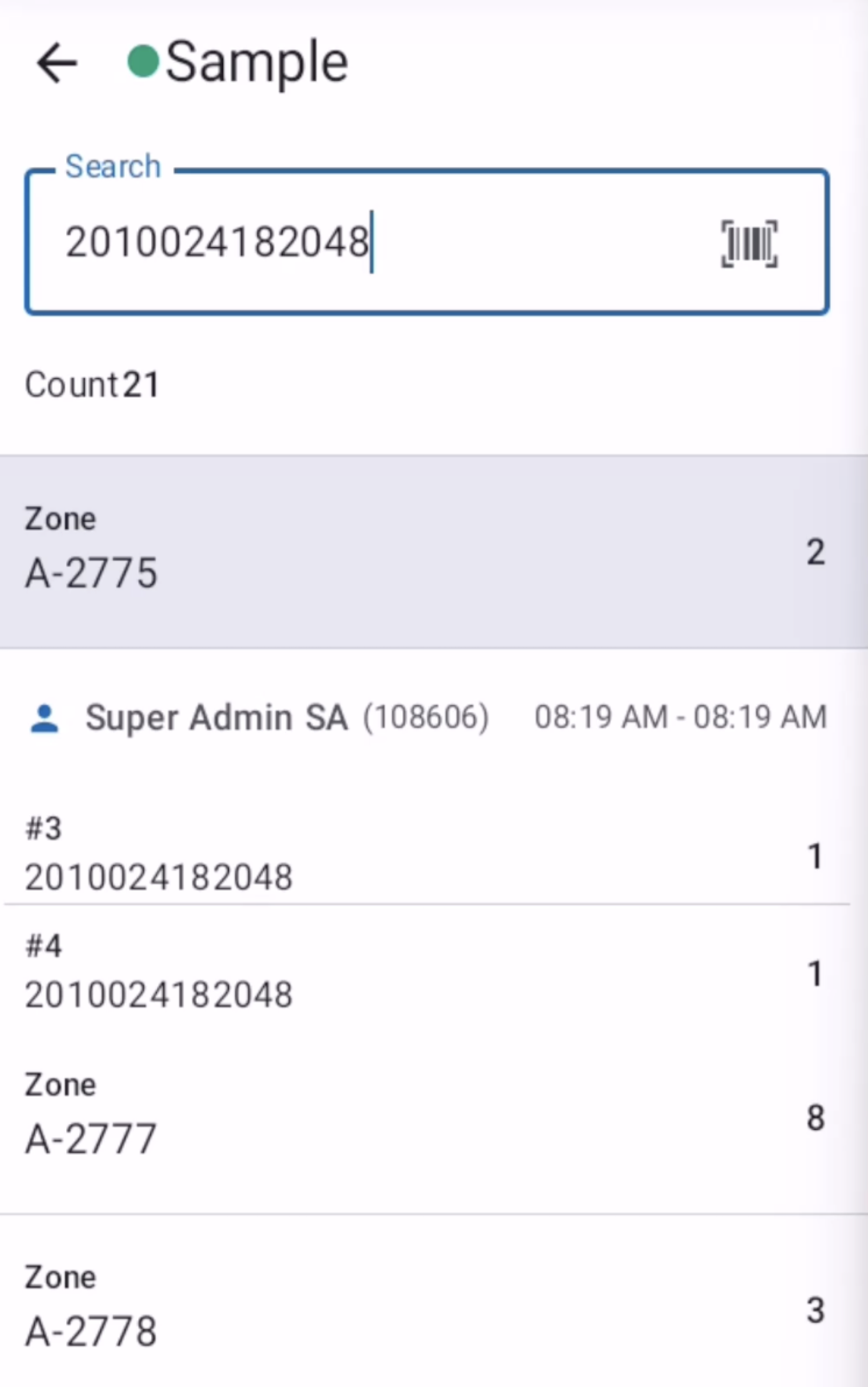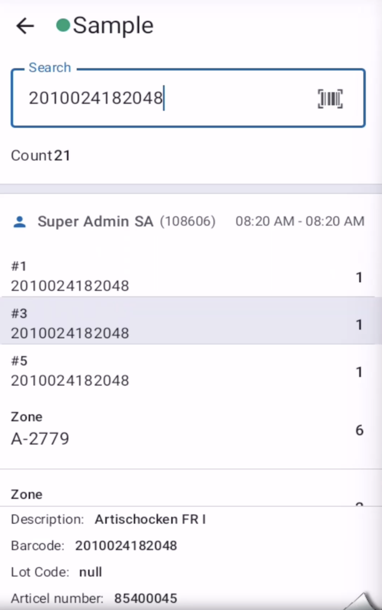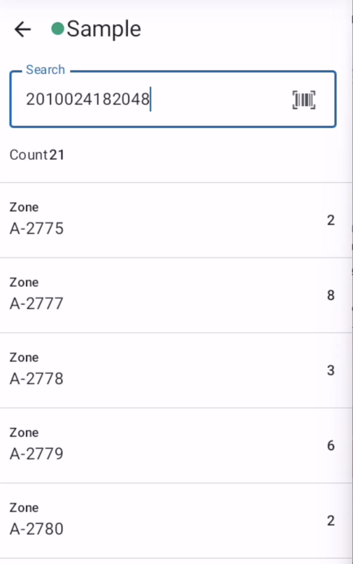 • Count: Number of times the barcode has been identified across all zones.