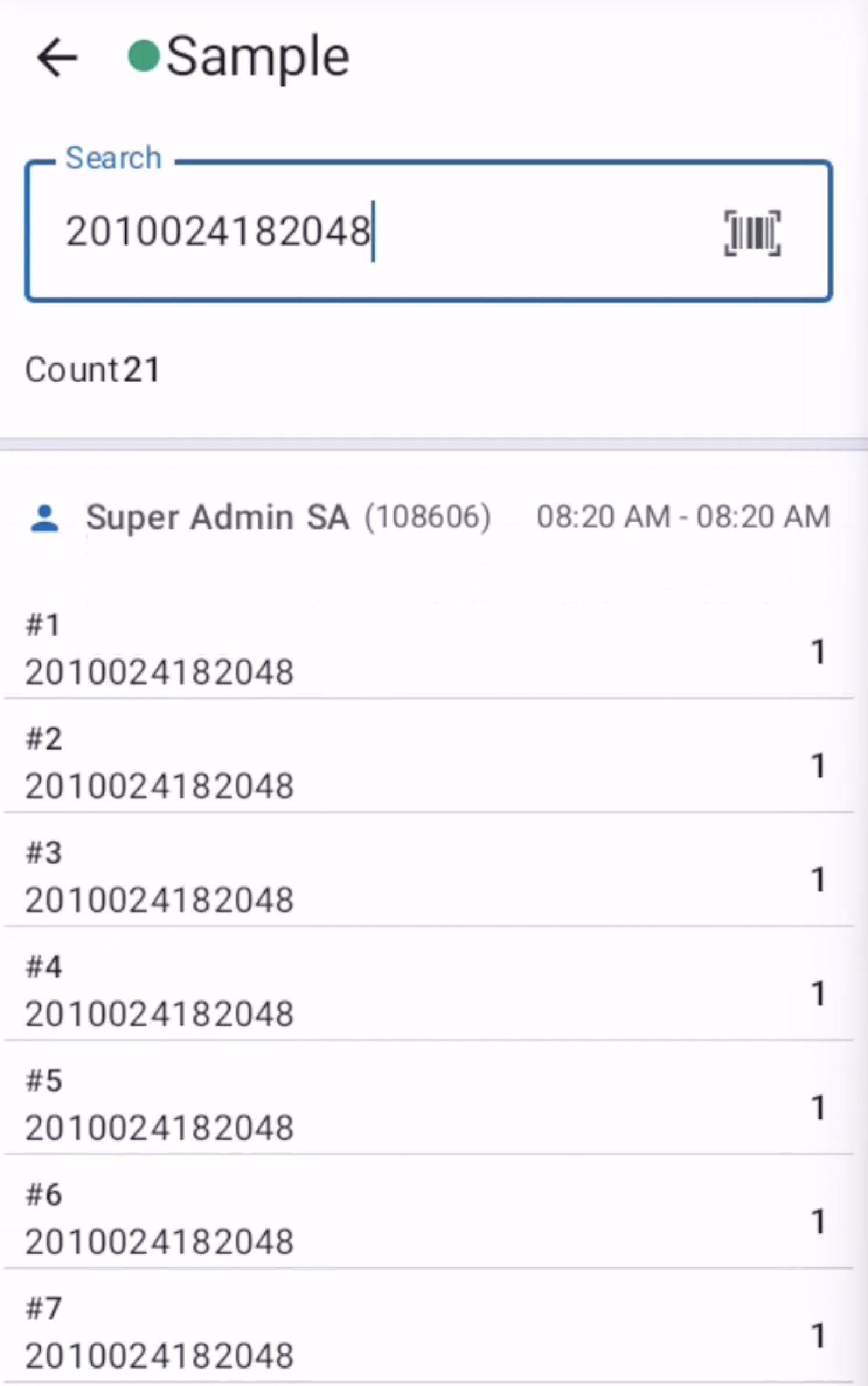• Matching Barcode: The barcode or identifier of the item to look up scan history for.