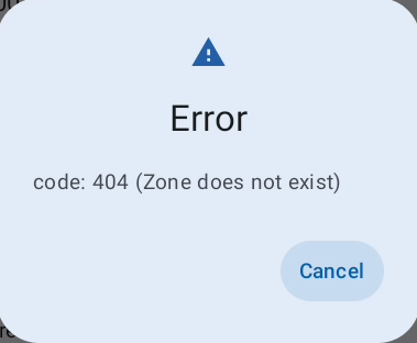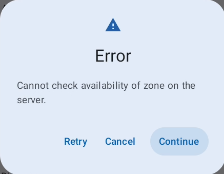 • The server can not be reached to validate the zone status. -> Check your connection and retry