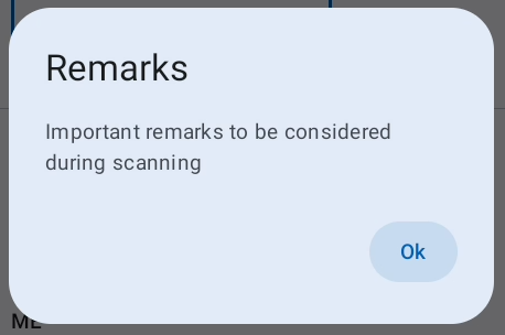 The Team-Manager or Area Manager can add remarks to the zone with important notes to the user performing the scanning/verification. These Remarks will be shown during the zone login, and can be reviewed clicking the Remarks Icon remarks