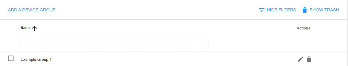 - Header & Controls: Add Device Group, Filters, Show Deleted