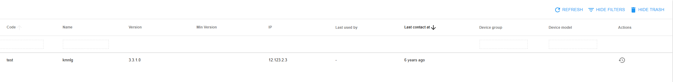 Devices Trash Table
