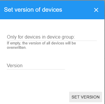 - One or more devices selected (bulk operations): Update device version, Set minmum version, Set device group