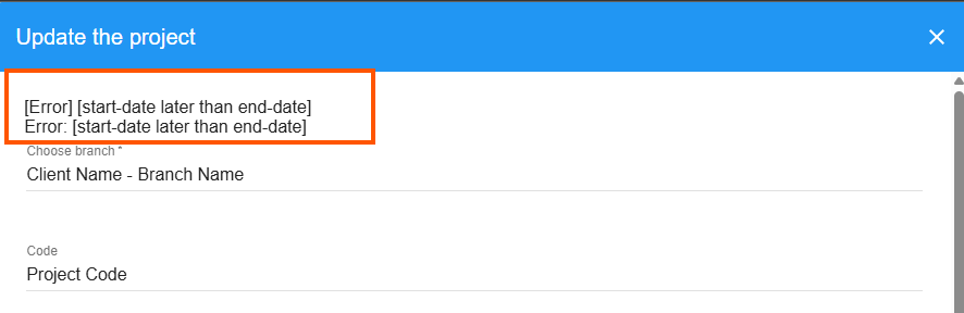 - Field validations do not match -> Adjust the mentioned fields to a valid value